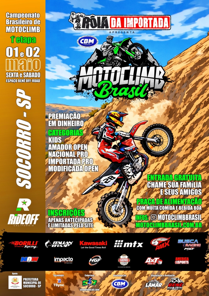 A temporada 2026 do Campeonato Brasileiro de MotoClimb começa nesta sexta-feira, 1º de maio, e sábado, 2 de maio, no Espaço Bene Off-Road, em Socorro (SP), com a realização da 1ª etapa da competição oficial da modalidade no país. Reconhecido como uma das formas mais antigas do motociclismo mundial, o MotoClimb (ou Hill Climb) ganhou status oficial no Brasil em 2024, após homologação da Confederação Brasileira de Motociclismo (CBM), consolidando-se como o primeiro e único campeonato brasileiro da história da modalidade.