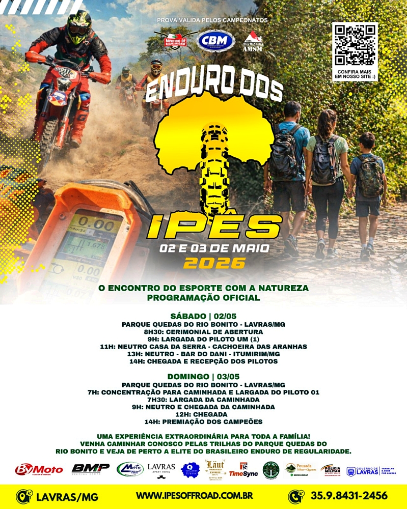Reconhecido por sua organização, tradição e alto nível técnico, o Enduro dos Ipês consolida-se como uma das etapas mais importantes da modalidade no Brasil, fortalecendo o calendário oficial da Confederação Brasileira de Motociclismo e valorizando o motociclismo esportivo em Minas Gerais.
